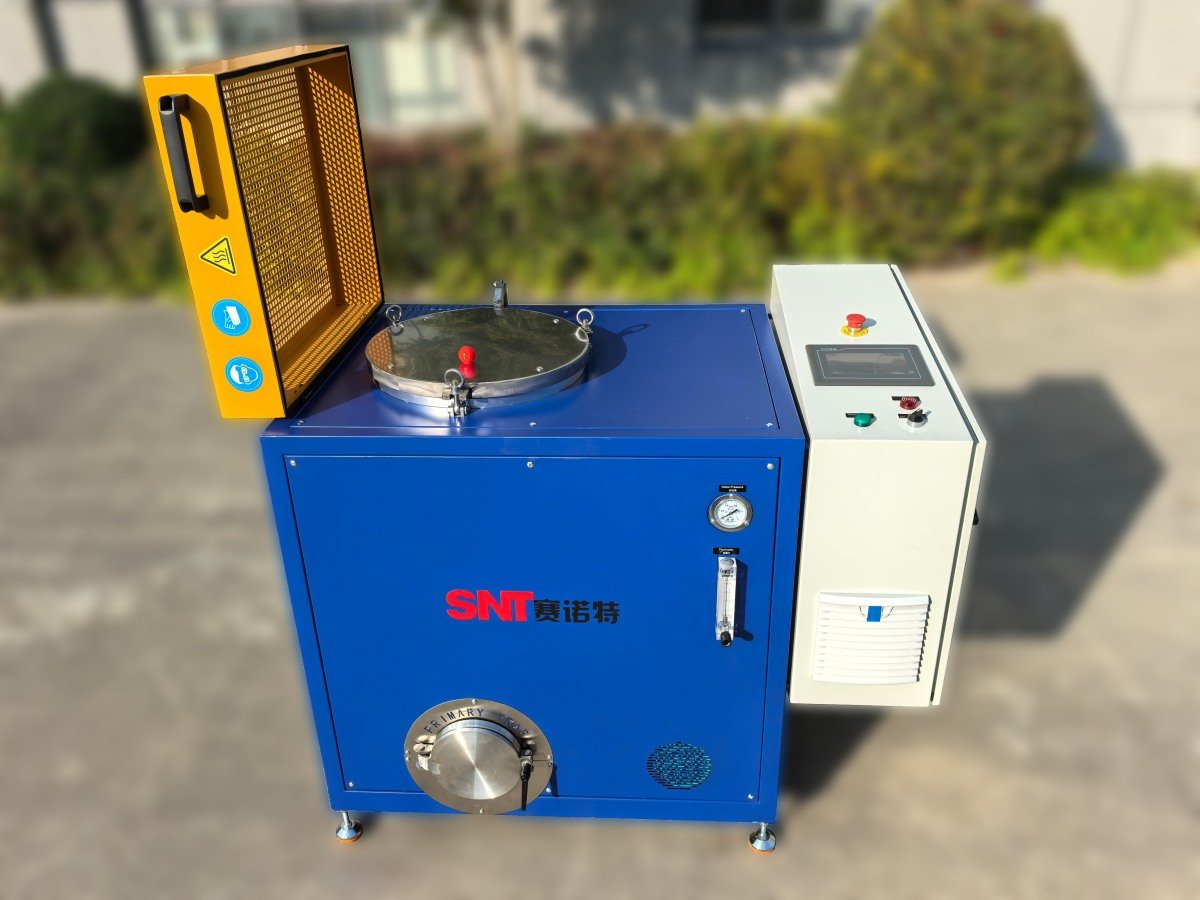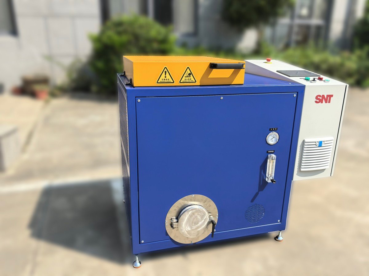 Vacuum Jet Cleaner is designed specially for cleaning polymers from a variety of metal parts. The parts to be cleaned are heated in a chamber where the polymer melts and drains into the bottom collector. Remaining polymer is vaporized and then water scrubbed in a secondary scrubber where condensates are collected and rush out with water. Since cleaning takes place under vacuum, combustion does not occur. The parts are protected from excessive or localized high temperatures. The whole process has no pollution.